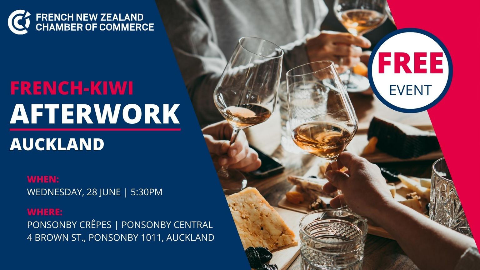 The FNZCCI would like to invite you to attend its June French-Kiwi Afterwork in Auckland.