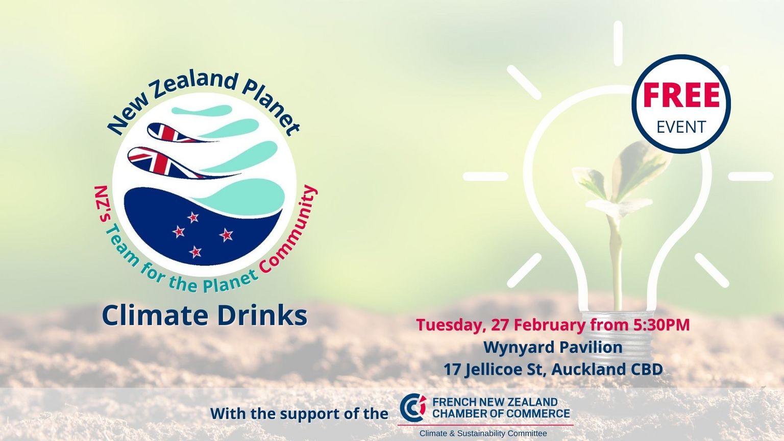 #ClimateDrinks are organized by the community of Team for the Planet in Aotearoa New Zealand, with the support of FNZCCI Climate and Sustainability Committee, and are open to everyone interested in climate action and sustainability.