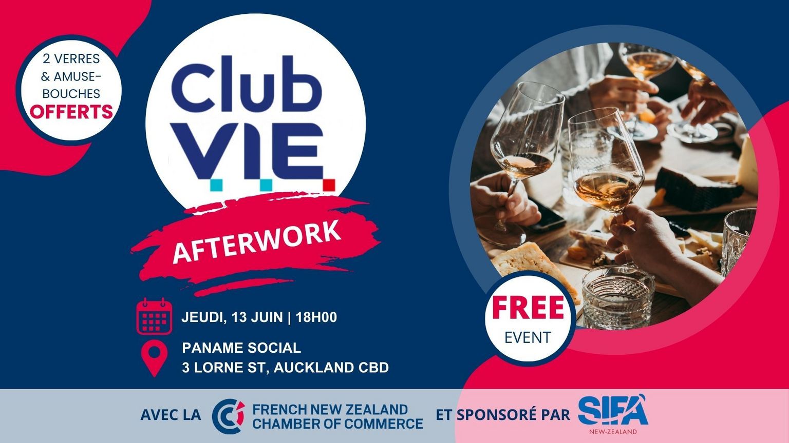 L'inscription est gratuite et une première tournée de boisson et d'amuse-bouches vous seront offerts par notre sponsor SIFA New Zealand.