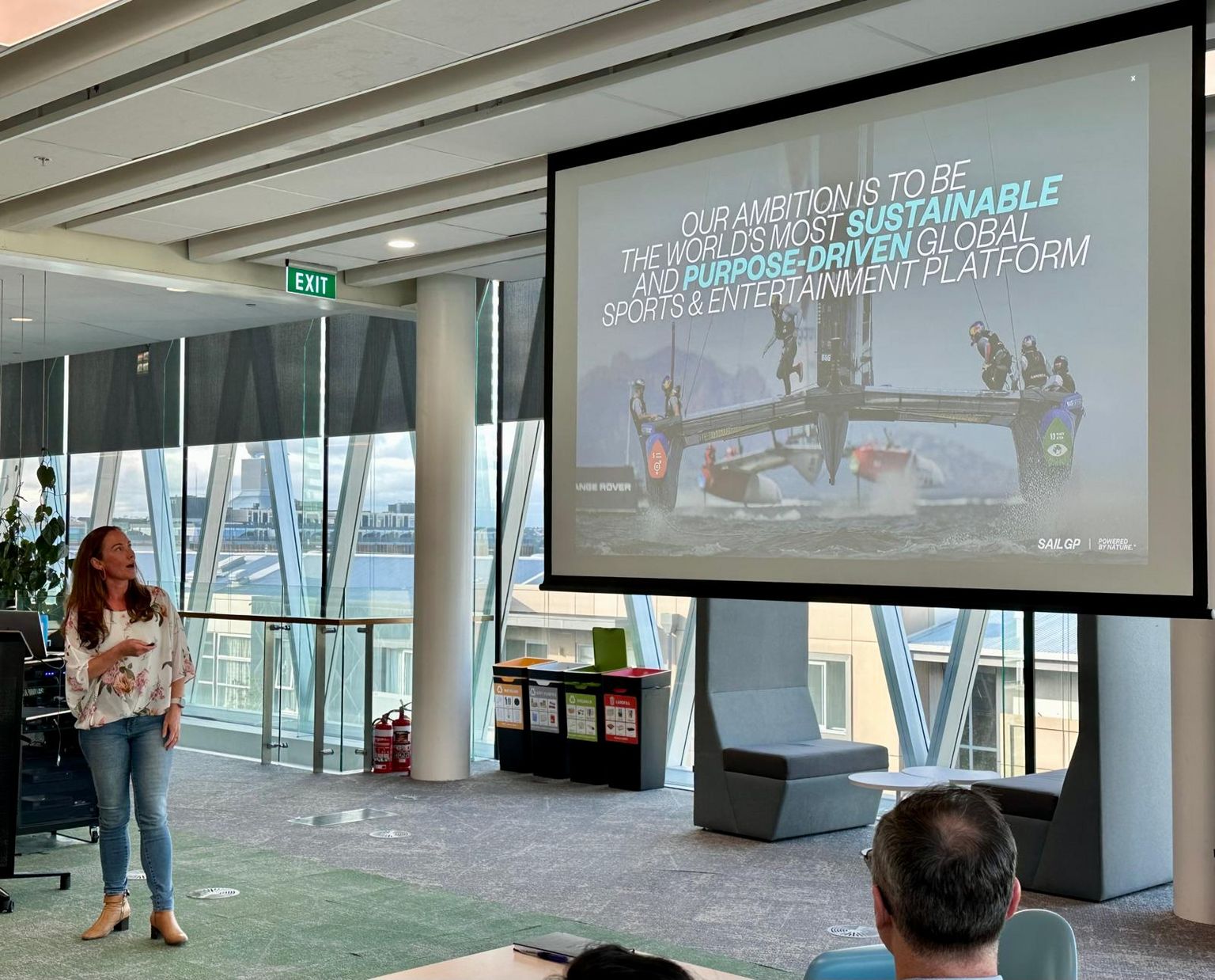 The evening kicked off with a warm introduction and update from Frederik Cornu, New Zealand Planet Leader of Team for the Planet. The audience then enjoyed a though-provoking presentation by Kat McDonald, Purpose & Impact Manager APAC at SailGP. Kat explored the theme of “Sport and Sustainability,” illustrating how sports organizations can be powerful drivers of environmental and social change. She outlined the challenges of embedding sustainability in the world of competitive sports but also showcased how SailGP is leading by example, creating positive impact both on and off the water.